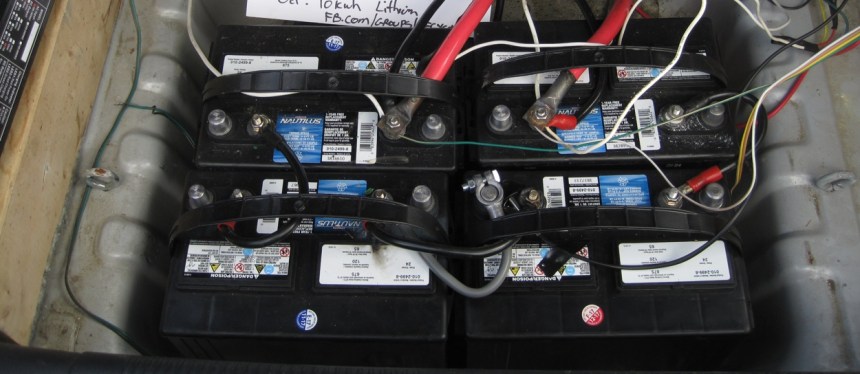 Dans le compartiment du pneu de secours logent 4 batteries 12 V pour une autonomie variant entre 10 et 15 km. De nouvelles batteries au lithium seront installées prochainement pour une autonomie de 30 à 50 km.