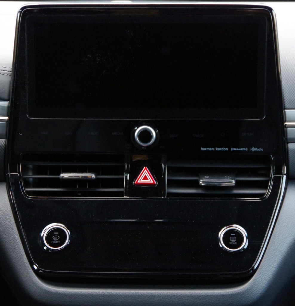 Du côté de la Ioniq électrique, la majorité des contrôles sur cette console sont de type bouton à effleurement. Seuls deux vrais boutons physiques demeurent, celui du volume de la radio et celui des feux d’urgence. Lorsque le véhicule est éteint, on y voit seulement un tableau noir.