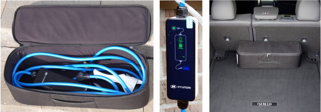 Une considération, avant d’installer votre borne de recharge ou même lors du choix de la borne dont la longueur des câbles peut varier, l’emplacement du port de recharge pour la Ioniq électrique est à l’arrière sur le côté gauche du coffre comparativement à celui du Kona électrique qui est situé complètement à l’avant.