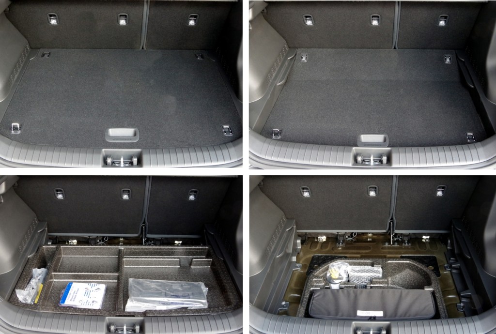 Au niveau de l’espace sous le plancher du coffre, le Kona électrique fait beaucoup mieux. En plus d’offrir un plancher ajustable en hauteur, il est possible d’y ranger tous les accessoires, contrairement à la Ioniq électrique dont je ne pouvais ranger la borne de recharge portative avec son étui sous le plancher.