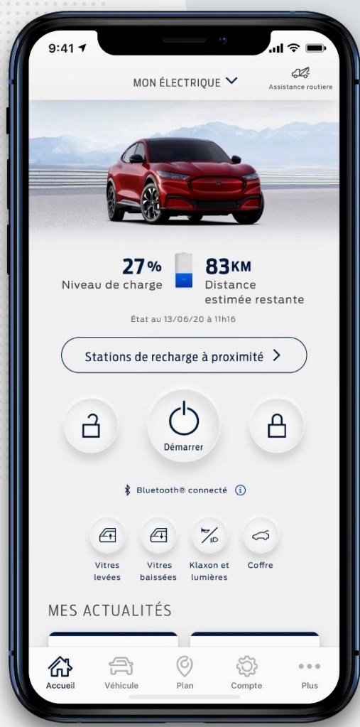 Tout comme le fait Tesla, il est possible d’utiliser son téléphone cellulaire en tant que clé ou pour gérer différentes fonctions du véhicule, à l’aide d’une application nommée « FordPass ».