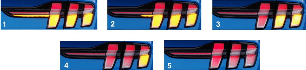 La Mustang Mach-E est équipée de feux séquentiels pour ses clignotants autant à l’avant qu’à l’arrière.