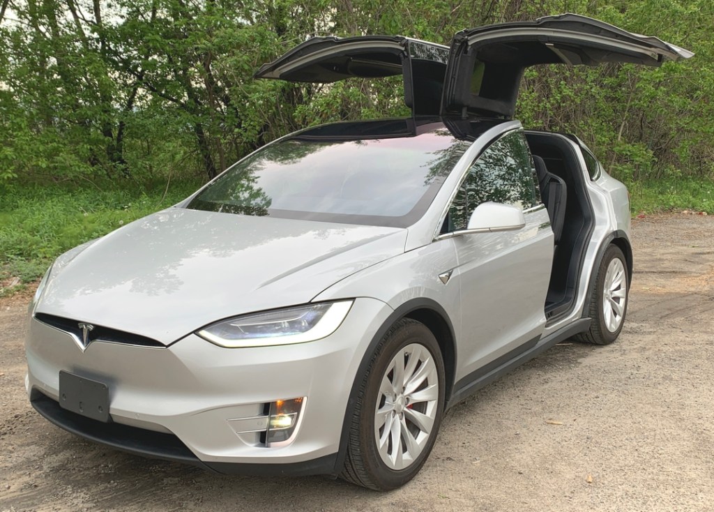 Ci-contre, la Tesla Model X se démarque des autres par l’ouverture de ses portes arrières à la verticale et son pare-brise qui se prolonge jusqu’aux portes arrières.