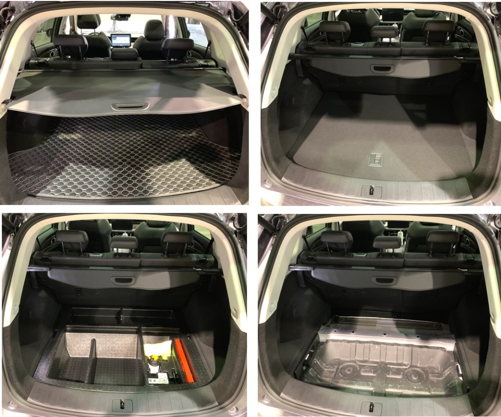 Le coffre dispose d’un cache-bagages rétractable. Sous le tapis matelassé, on peut retirer le plancher pour accéder à un bac de rangement pratique. Pour obtenir d’avantage d’espace, le bac/séparateur peut être retiré.