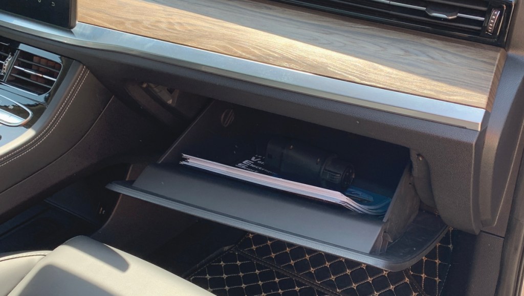 Le coffre à gant est d’un format pratique pouvant accueillir plusieurs documents 8.5″ x 11″ avec de menus objets.