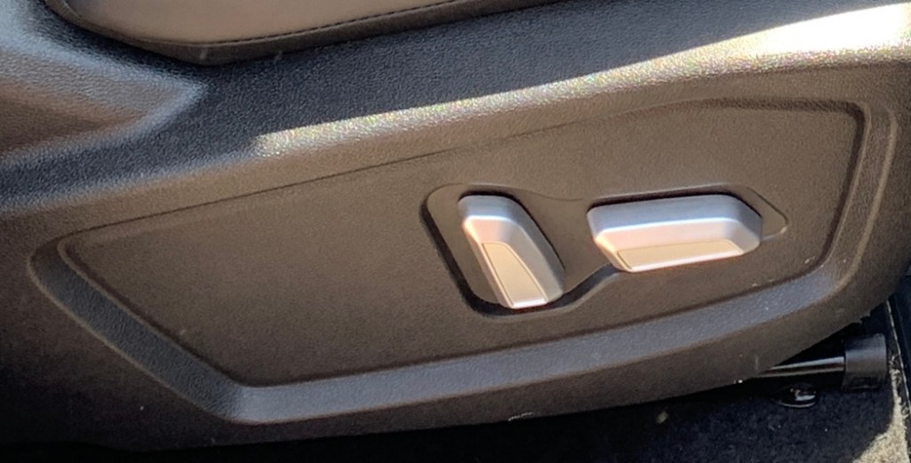 Sur le côté droit au bas du siège, on retrouve les traditionnels boutons pour contrôler les ajustements électriques du siège. Toutefois, en plus de ces commandes, on en retrouve également sur le côté gauche du dossier.