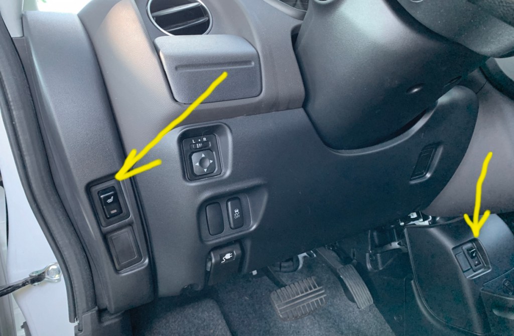 Au bas du tableau de bord, on retrouve un levier pour ouvrir la porte du port de recharge de niveau 2 (qui est située à l’arrière droit du véhicule). Au plancher, à gauche du siège du conducteur, on retrouve un levier pour ouvrir la porte du port de recharge rapide (qui située à l’arrière gauche du véhicule).