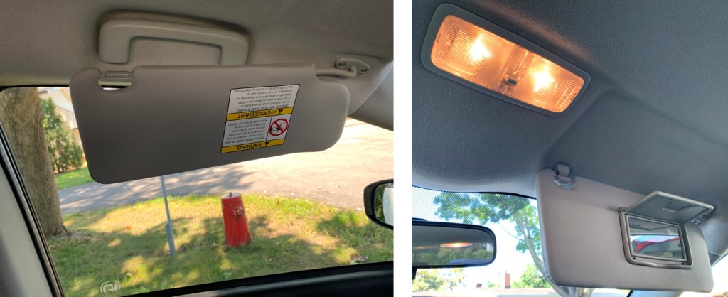 Les pare-soleils ne sont pas extensibles. Ils sont munis d’un miroir non éclairé, mais les plafonniers incandescents suffisent à la tâche.