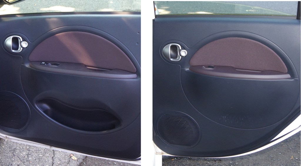 On retrouve un espace de rangement dans les portes avant, tandis qu’il n’y en a pas aux portes arrière.
