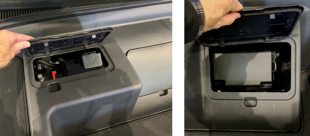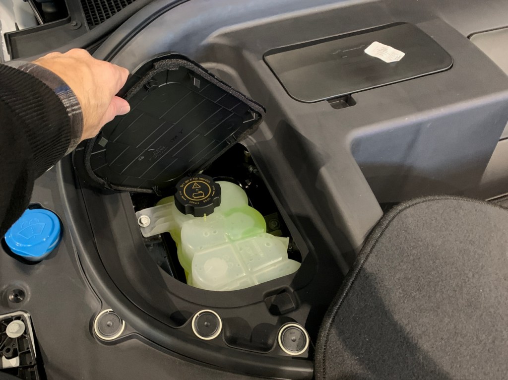Le frunk offre un accès rapide à différentes composantes telles que le réservoir du liquide de refroidissement, les bornes de la batterie 12V et la boite à fusibles, ce qui n’est pas toujours le cas pour plusieurs autres VÉ avec frunk.