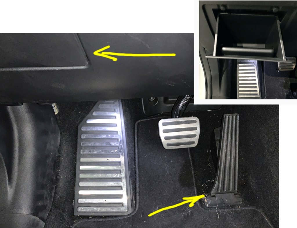 Le véhicule offre un grand repose pied, tandis que la pédale d’accélération n’est pas seulement suspendue, mais elle repose sur un pivot fixé au sol.