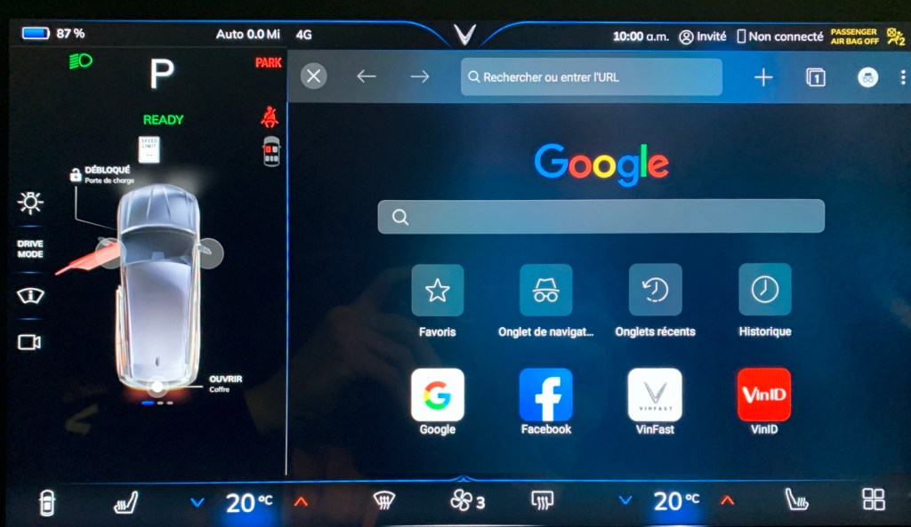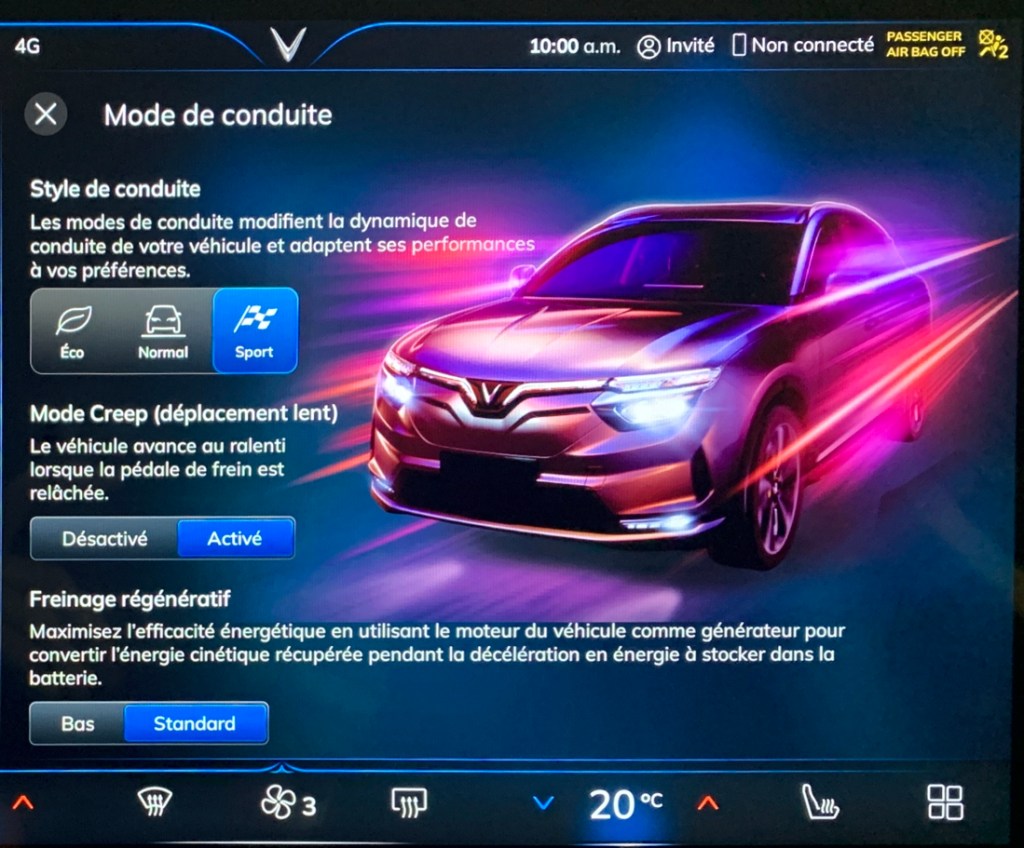 Pour compléter cette série d’articles sur VinFast, voici un aperçu du VF8. En date du 21 avril 2023, l’homologation n’avait toujours pas été effectuée pour le Canada et je n’ai pu conduire le véhicule. Un représentant VinFast m’a indiqué que l’homologation devait être faite incessamment.