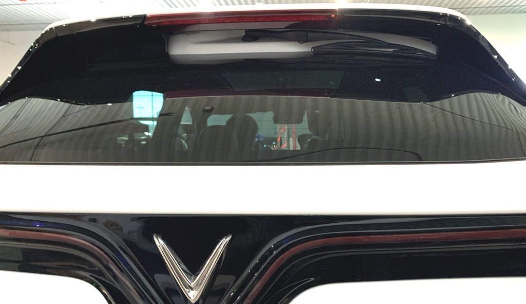 Alors que plusieurs constructeurs font disparaitre l’essuie-glace arrière, le VF8 en dissimule un sous le déflecteur. À l’abris des intempéries, on pourrait penser qu’il pourra demeurer plus dégagé lors de nos hivers.