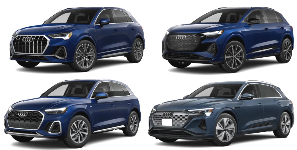 Parmi la sélection de VUS Audi ci-contre, pourriez-vous identifier ce qui est 100% électrique de ce qui ne l’est pas?
