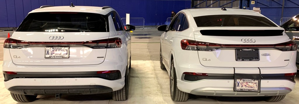 Ci-contre la Audi Q4 e-tron suivie de la Q4 e-tron Sportback