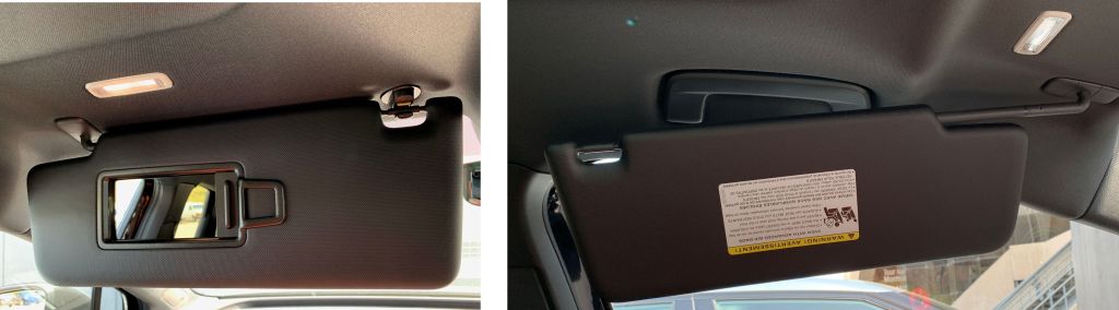 Les pare-soleils sont extensibles. À noter la présence d’une poignée au plafond côté chauffeur, ce qui n’est pas commun sur toutes les voitures au Canada.