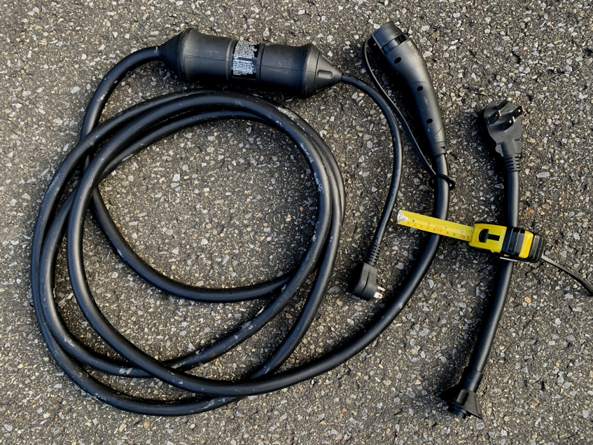 Ci-contre la borne de recharge portative compatible 120V et 240V selon le câble utilisé. Fait particulier, le câble dispose d’un diamètre de plus de 2.2 cm (0.88″).