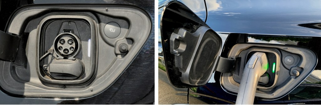 Le port de recharge CCS Combo est muni d’un éclairage qui sert également d’indicateur de recharge. Il est situé à l’arrière gauche du véhicule tout comme les Tesla.