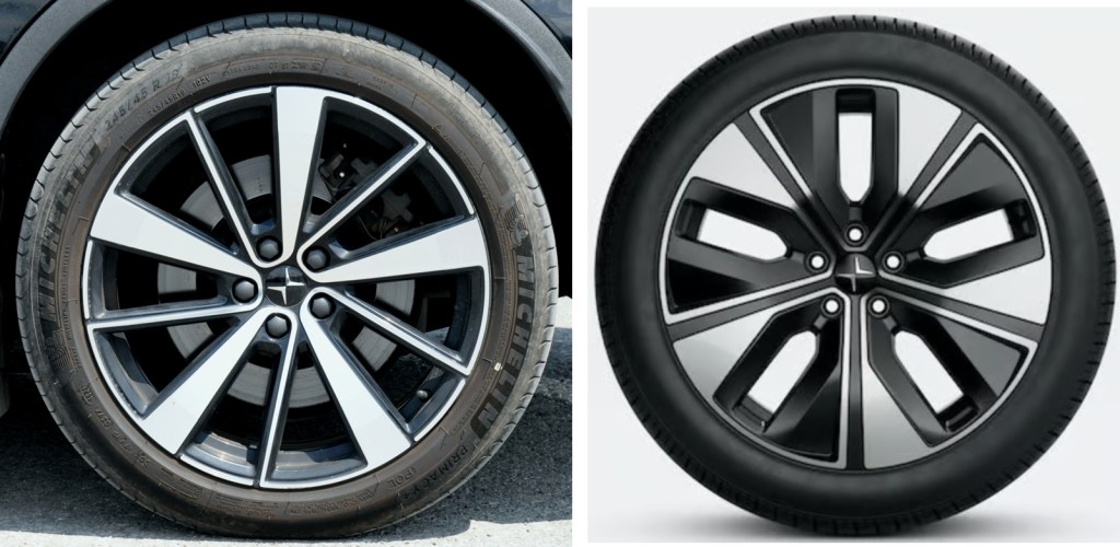 Le véhicule vient de série avec 4 roues de 19 pouces (245/45R19) (photo) ou 20 pouces en option (245/40R20). Ci-contre à gauche la roue de 19 pouces de 2022 et à droite celle de 2024.
