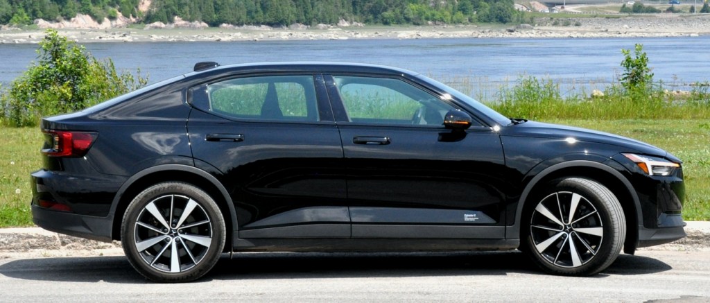 De chaque côté du véhicule au bas des portières avant, Polestar n’hésite pas à afficher la capacité de sa batterie et la puissance du véhicule.